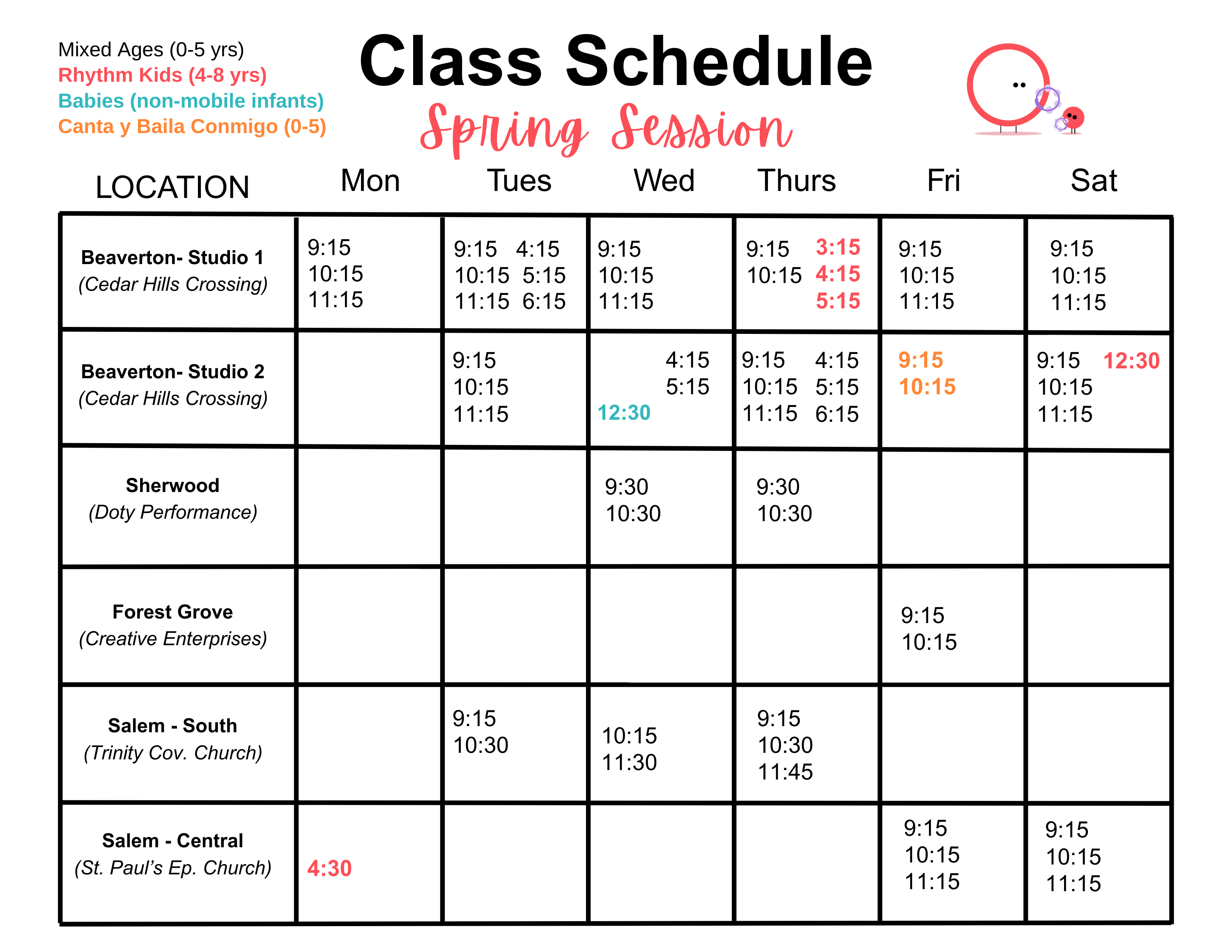SPRING SESSION runs April 6-June 6 (9 weeks + Family Picnic & Concert!)